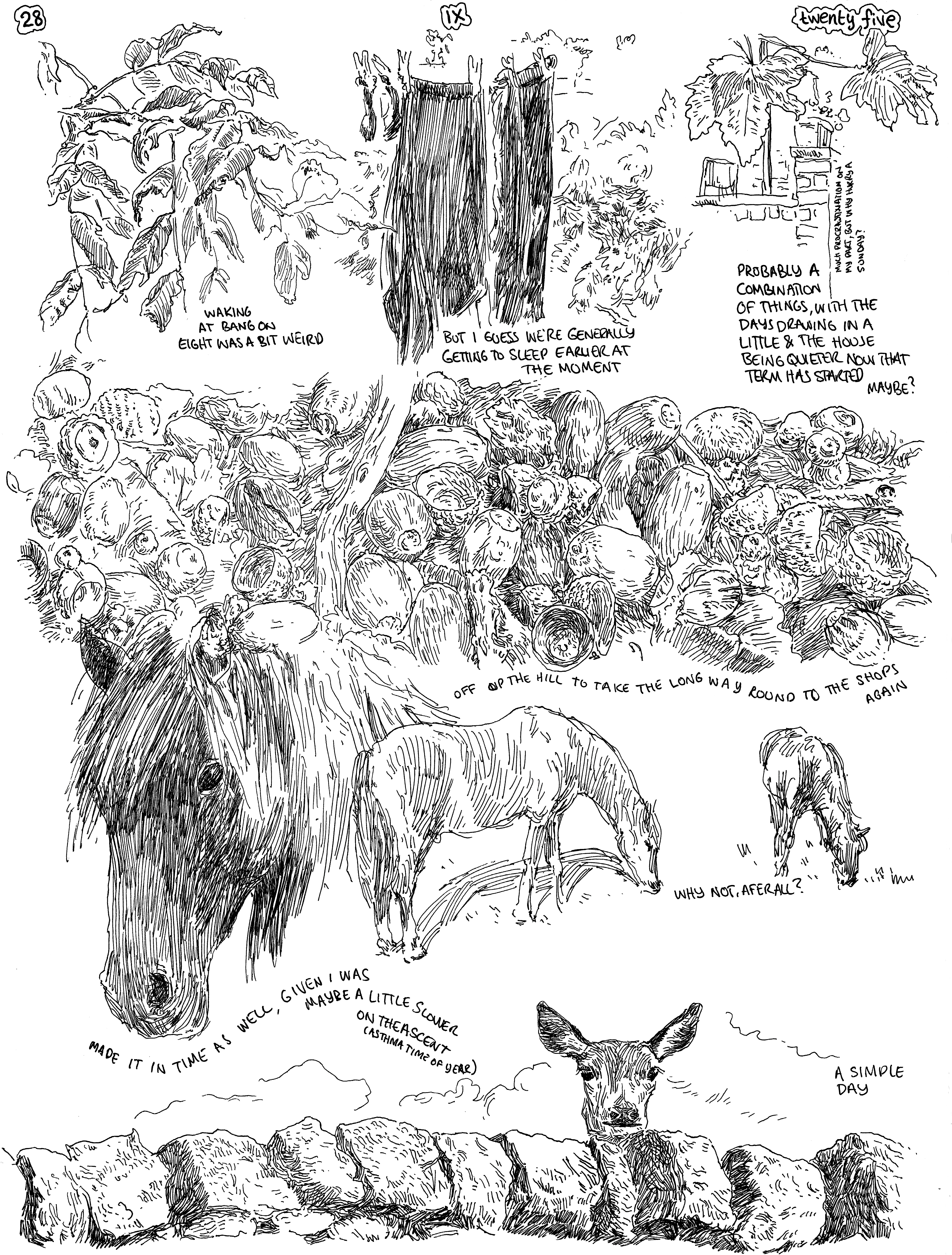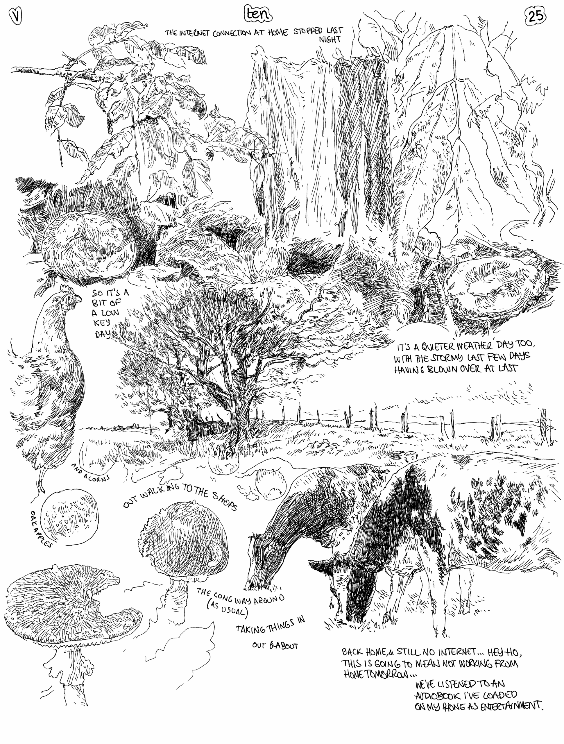 SundayComic: comic drawn on Sundays from Life and photo-reference. I guess this is the first weekend it's been just Louise & myself at home, with Esme off at Uni now.  Eve has a new room in London now as well, so hopefully that will all work well.  what didn't make the edit today were cows & sheep and my aching feet as the  shoes i wore today, while the most waterproof i had (it rained a lot last night so i thought, "there will be mud" - there was not) they are not the most comfortable.