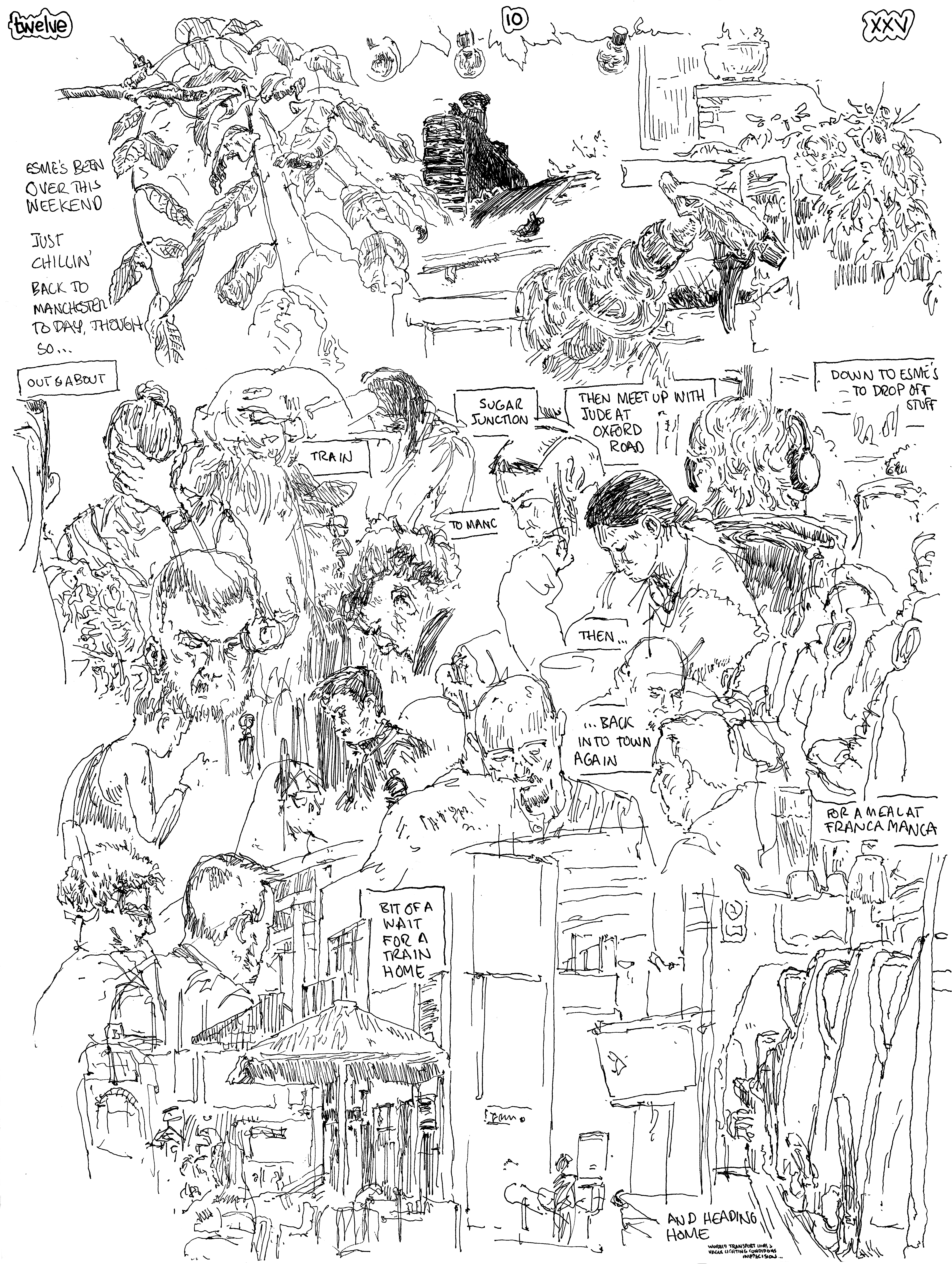 SundayComic: comic drawn on Sundays from Life and photo-reference. We went to Manchester with Esme & came back with Jude.  A little unexpected, but Jude decided to come over for a mentioned Sunday to Monday Stay (Esme came over Friday).  I'm a bit stuffed as we had a stop my at Sugar Junction for a sarnie & then had a pizza later.